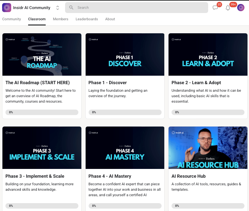 Go to "Classroom" -> then click "The AI Roadmap (start here)" module.