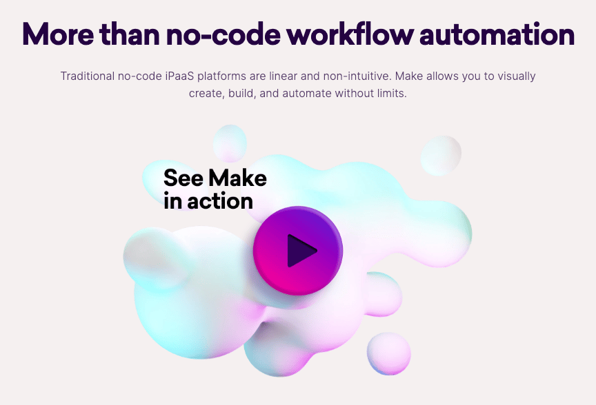 💡 Make.com is fenomenal for tasks and workflows to apps and systems; you can build and automate anything in one visual platform.